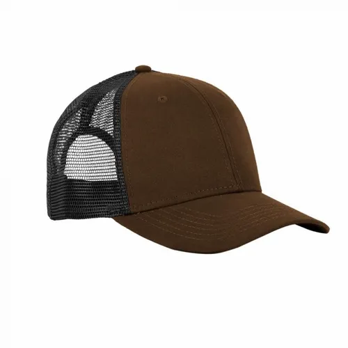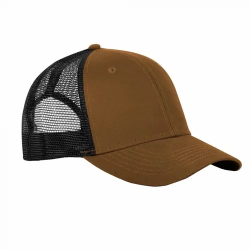 Front: 100% Cotton, 10 oz. Canvas Back: 100% Polyester, Classic Trucker Mesh Traditional Fit: Structured, Low-profile, Curved Bill Six-panel NO Sweat Moisture-wicking Sweatband Snapback Closure