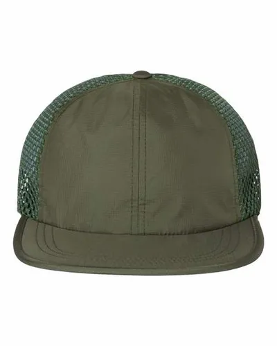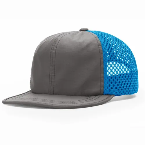 Front: 100% Polyester Back: 100% Polyester Ripstop Polyester Fabric, Honeycomb Polyester Mesh Unstructured, Six-panel, Low Pro Profile Flex Packable, Floatable Bill Stay Dri Performance Sweatband Quick Adjust Nylon Backstrap