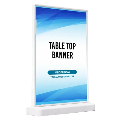 Want to add a matching addition to your table covers? Check out this Plastic Desk Display Accessories.