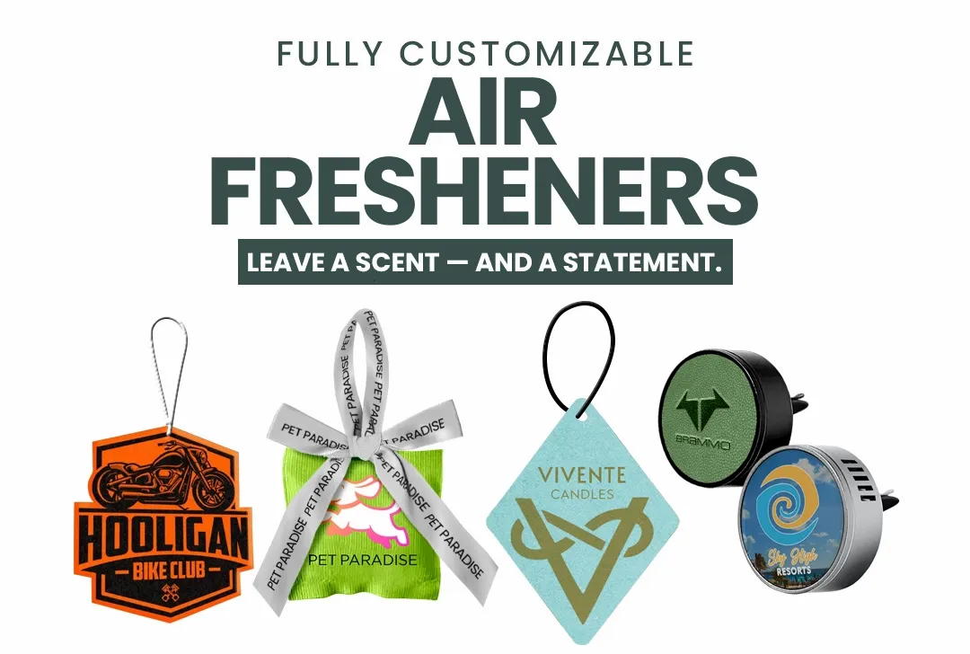 Make a lasting impression by creating custom air fresheners that combine style, fragrance, and branding. Whether for personal use or promotional purposes, customizable air fresheners are a fresh way to make an impact.
