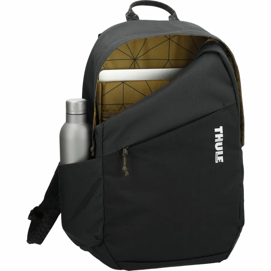 Get ready to head Back To Campus with the Thule Heritage BTC 59 Backpack, comprised of Recycled Polyester with 420d Nylon. The exterior materials of this backpack are Bluesign approved. This back features a zippered main compartment for easy access when on the floor or desk. Get ample electronics organization with the padded laptop sleeve and a separate quick access pocket for accessories or power cords. Carry in comfort with the padded backpanel and shoulder straps. This backpack also features a side water bottle pocket and a durable handle/loop to grab or hang the bag.