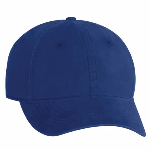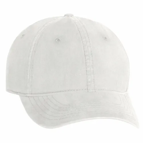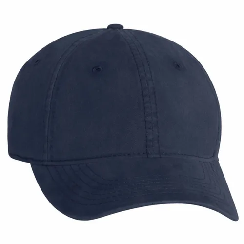 Peach-washed 100% Cotton Twill, Unstructured, Low Profile, Six Panel, Pre-curved Visor, Sewn Eyelets, Cloth Strap, Tri-glide Buckle Closure, Navy Undervisor except matching on White, One Size