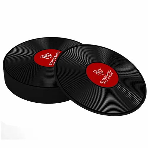 Drips and water marks from drinks can be prevented with this Soft Plastic Record Coaster. This coaster has a printed design like a real record label and a great memento on someone's desk. We have a lot of sizes for you to choose from!