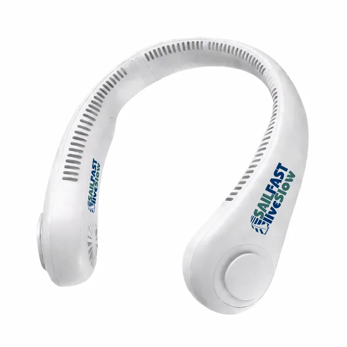 A custom portable cooling neck fan is a wearable fan designed to provide personal cooling by directing airflow towards the neck area. These fans are worn like a necklace and are ideal for keeping cool in hot environments, making them popular for outdoor activities, travel, and everyday use.
