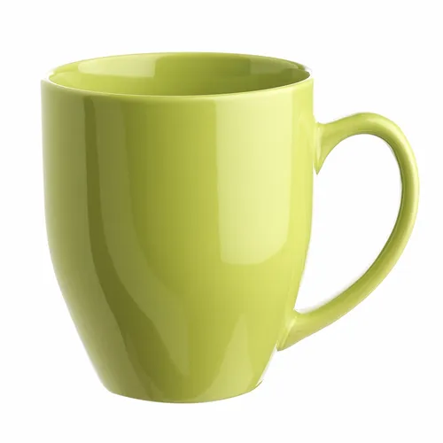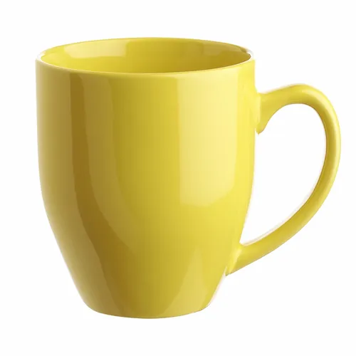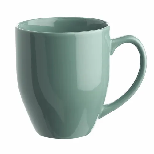 Bistro Style Wide Body Drink Promotional Imprinted Coffee Mugs. Smooth Molded Ceramic Composite. Glossy Vibrant Color Exterior Finish. High-Curved Grip for Easy Grab-n-Go Handling. Recommended Hand Wash Only