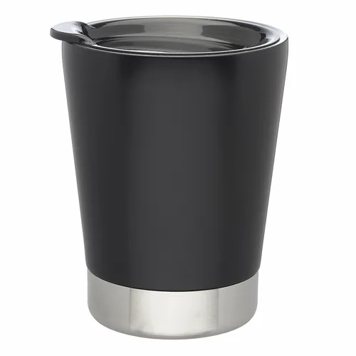 Vacuum Insulated Double Wall Stainless Steel Travel Mugs. Press-In Black Transparent Lid. Stainless Steel Interior and Bottom with Smooth Matte Exterior. Black EVA Pad. Easy Grip to Grab-n-Go. Wide Mouth for Easy Cleaning and Pouring Drinks. Great for Keeping Your Drinks Warm or Cold for a Longer Time. Note: Laser Engraving is offered for Front Side only