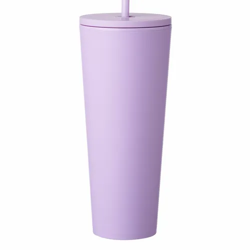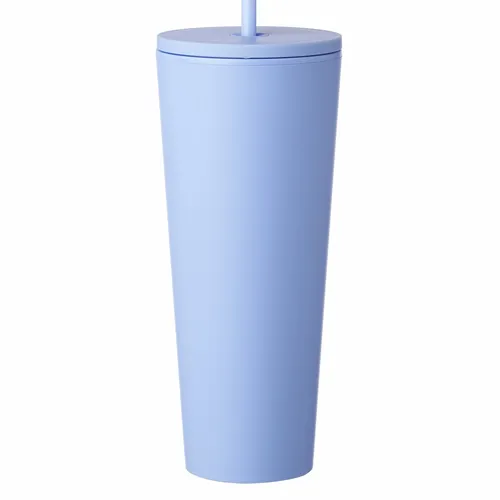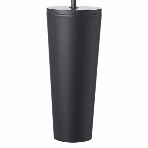 24 oz. Capacity. Screw On Lid with Straw Included. Double Plastic Wall. Wide Mouth for Easy Cleaning and Pouring Drinks