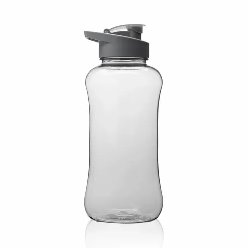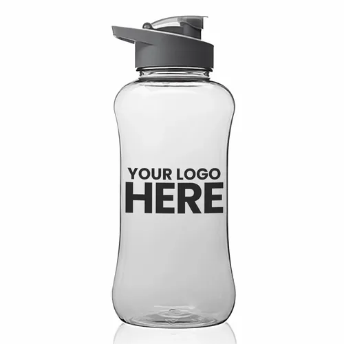 Plastic Water Bottles. Holds up to 60 oz of Liquid. Translucent Color Finish. Contrasting Solid Colored Caps. Built-In Carry Handle and Flip-Top Lids
