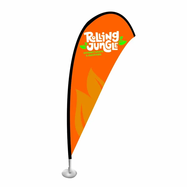 Our custom desk flags can definitely help you in drawing some much-needed attention. Generally, you have two shapes to choose from: Teardrop and Blade. Desk flags automatically come with a pole and stands.