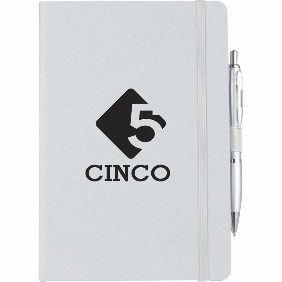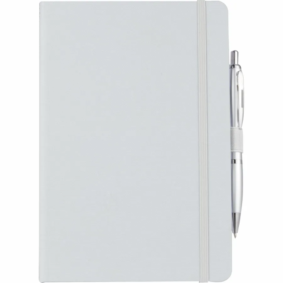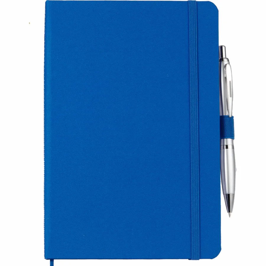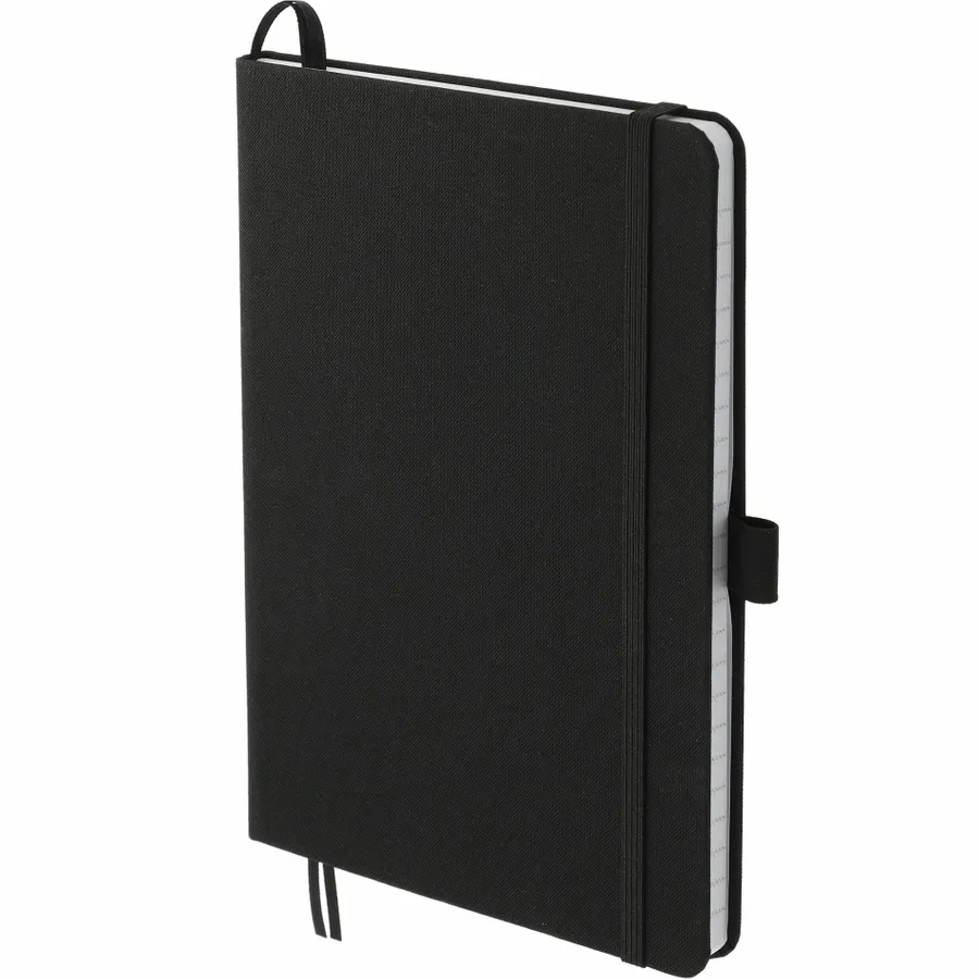 The 5.5 x 8.5 FSC Recycled Marine Bound Journal features a uniquely crafted cover material, Repreve, which is made with recycled ocean plastic and waste collected from coastlines of developing countries. Features color-matching elastic closure, pen loop and ribbon page marker. Includes 96 sheets of white lined FSC recycled paper. Through a partnership with 1% For The Planet, one percent of sales of all EcoSmart products are donated to environmental nonprofits.