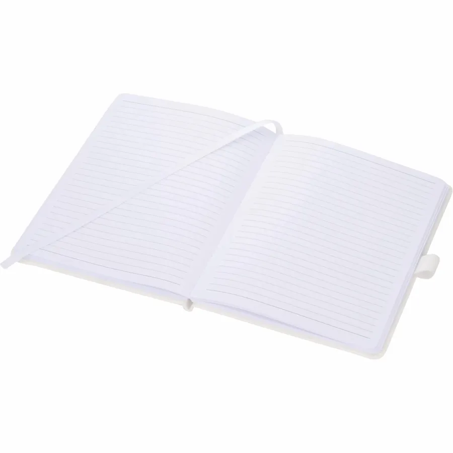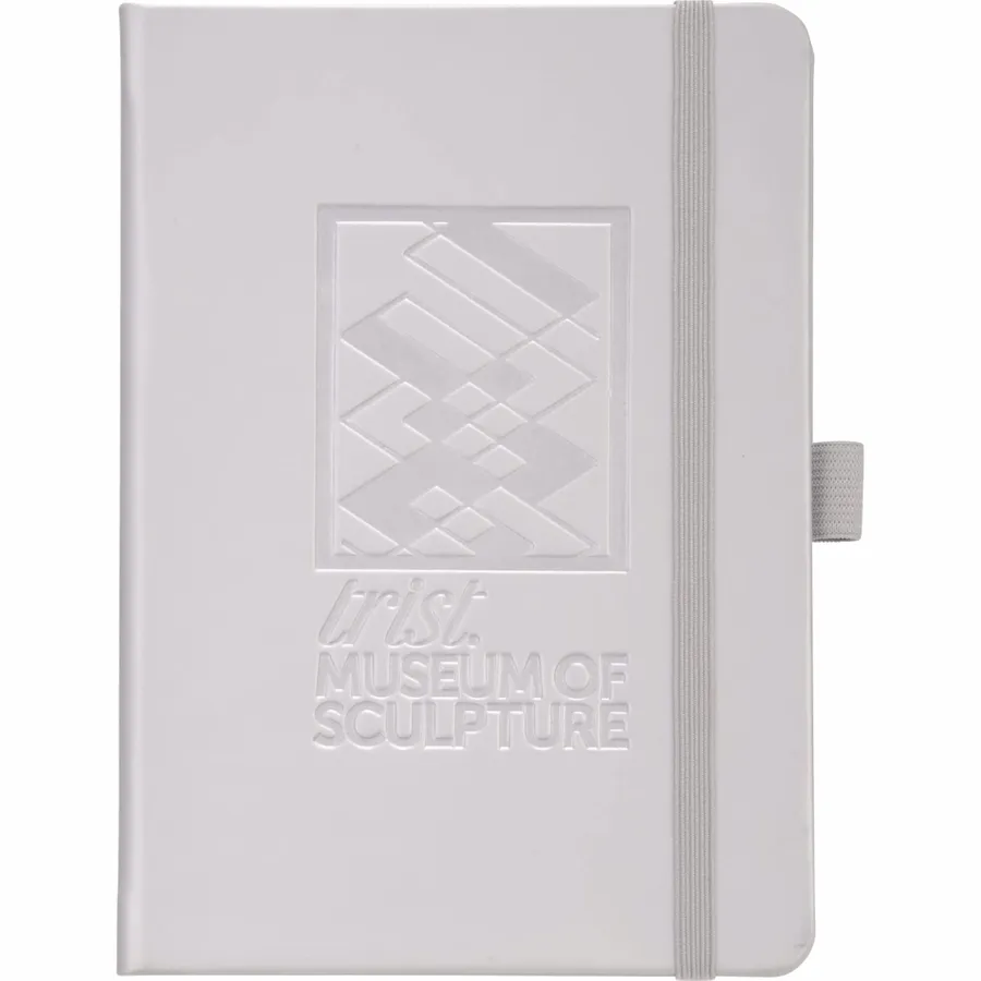 The 5 x 7 FSC Mix Vienna Hard Bound Journal is a soft touch, hard cover bound journal with built-in elastic closure. This custom notebook features a color-matching elastic pen loop and ribbon page marker. The 5 x 7 FSC Mix Vienna Hard Bound Journal includes 72 sheets of FSC Mix white lined paper.