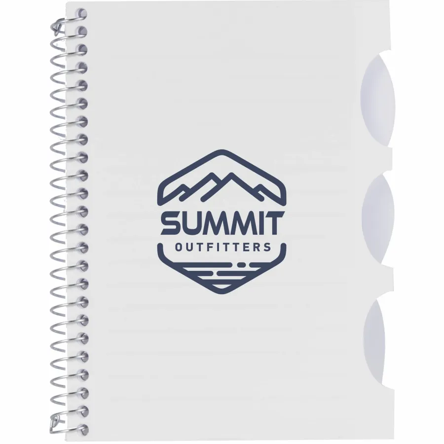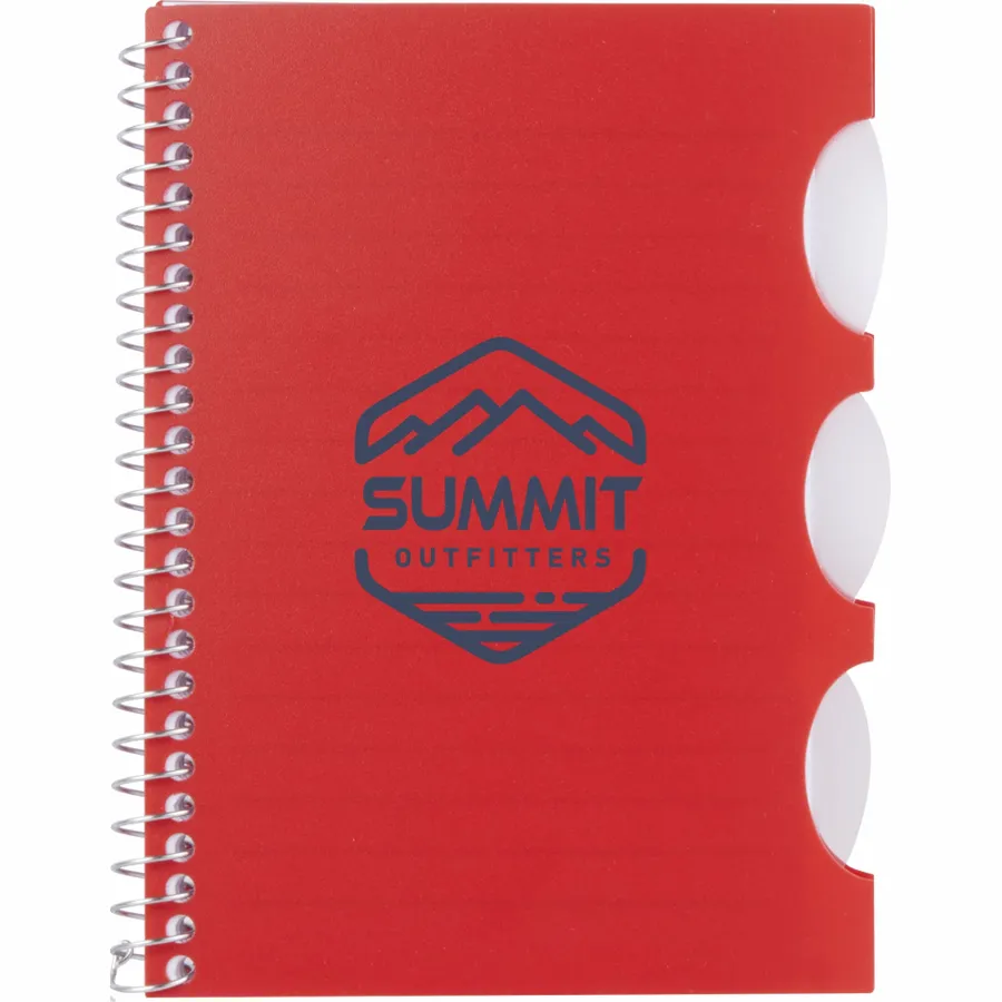 The 4” x 6” FSC Recycled Multitask Notebook features a 50% recycled PP hard cover with a die-cut design on the edge. The notebook includes tabs for organization and 70 sheets of FSC-certified recycled lined paper. By choosing this notebook, youre making a positive impact on the environment, as one percent of sales are donated to environmental nonprofits through a partnership with 1% For The Planet.
