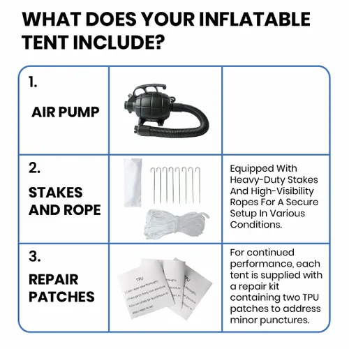 Electric Pump: A suitable pump is included with every tent. It features two power settings and comes with the correct plug (European or American standard) based on your delivery address.