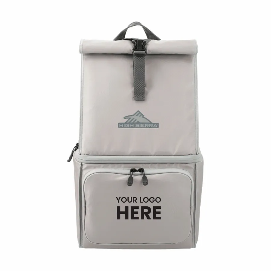 The High Sierra 12 Can Backpack Cooler is the perfect balance for an all-in-one bag/cooler combo. The top section is a non-insulated compartment with a roll top opening. The bottom compartment is a fully-lined cooler compartment for drinks and snacks. The outer material and cooler lining are both wipe able.