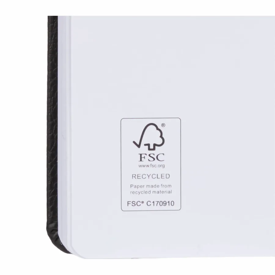 Take notes the sustainable way with the 5” x 7” FSC Recycled Pebble Hard Bound Journal. This journal features a durable cover made from recycled materials and 80 sheets of FSC recycled lined paper. Equipped with ribbon page marker and elastic closure. By choosing this journal, youre making a positive impact on the environment, as one percent of sales are donated to environmental nonprofits through a partnership with 1% For The Planet.