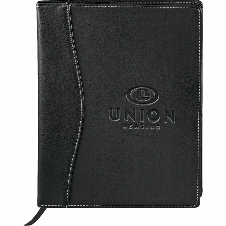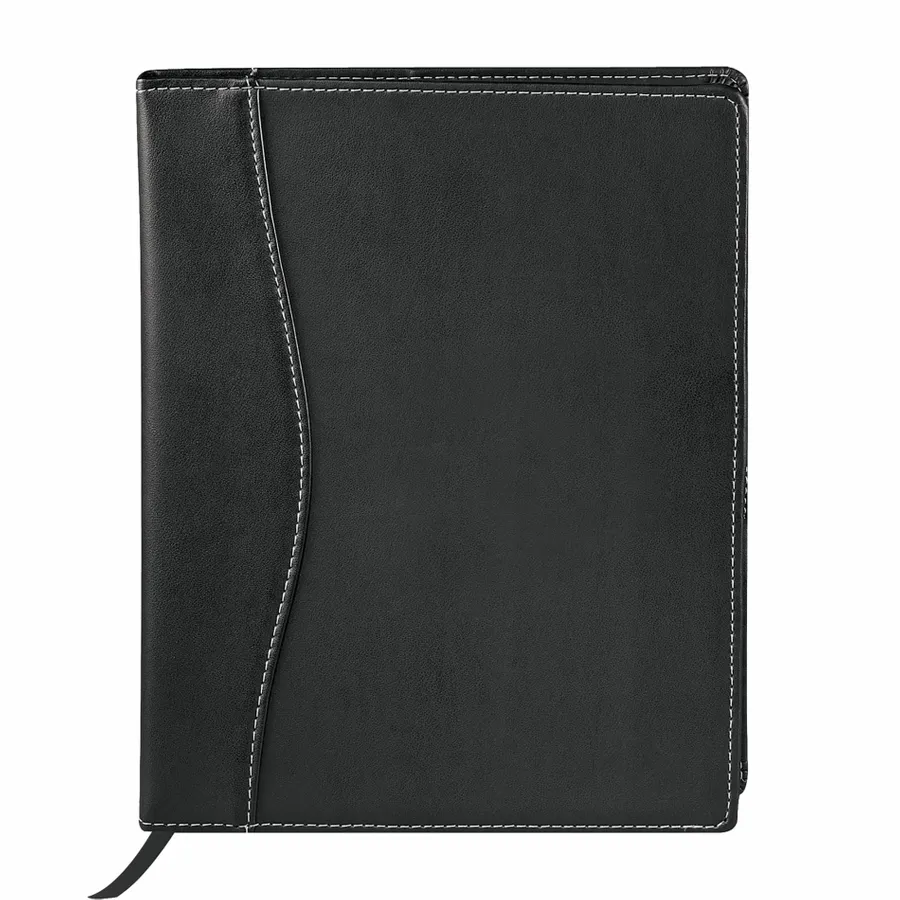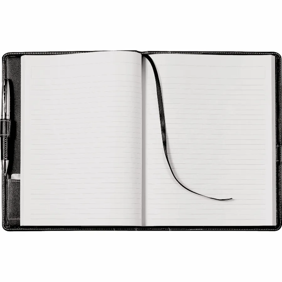 The 7.5 x 9.5 FSC Mix Hampton Journal is an elegant bound journal with a cover constructed from durable UltraHyde materials. It includes 90 sheets of 7 x 9 cream lined FSC Mix paper with refills available to order separately. The Hampton Journal contains a business card pocket, has a built-in ribbon page marker, and features a double pen loop with a secure locking closure for added privacy.