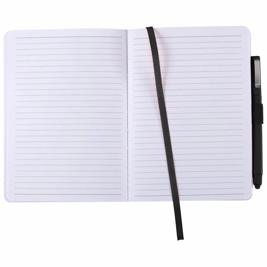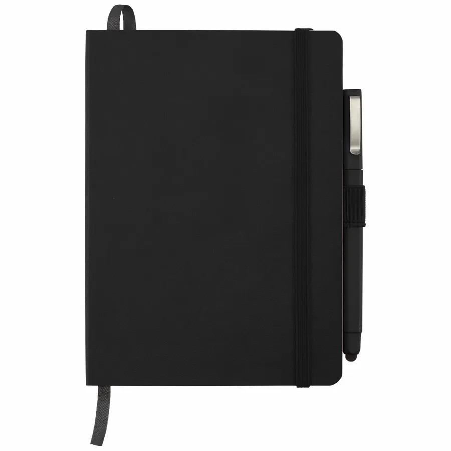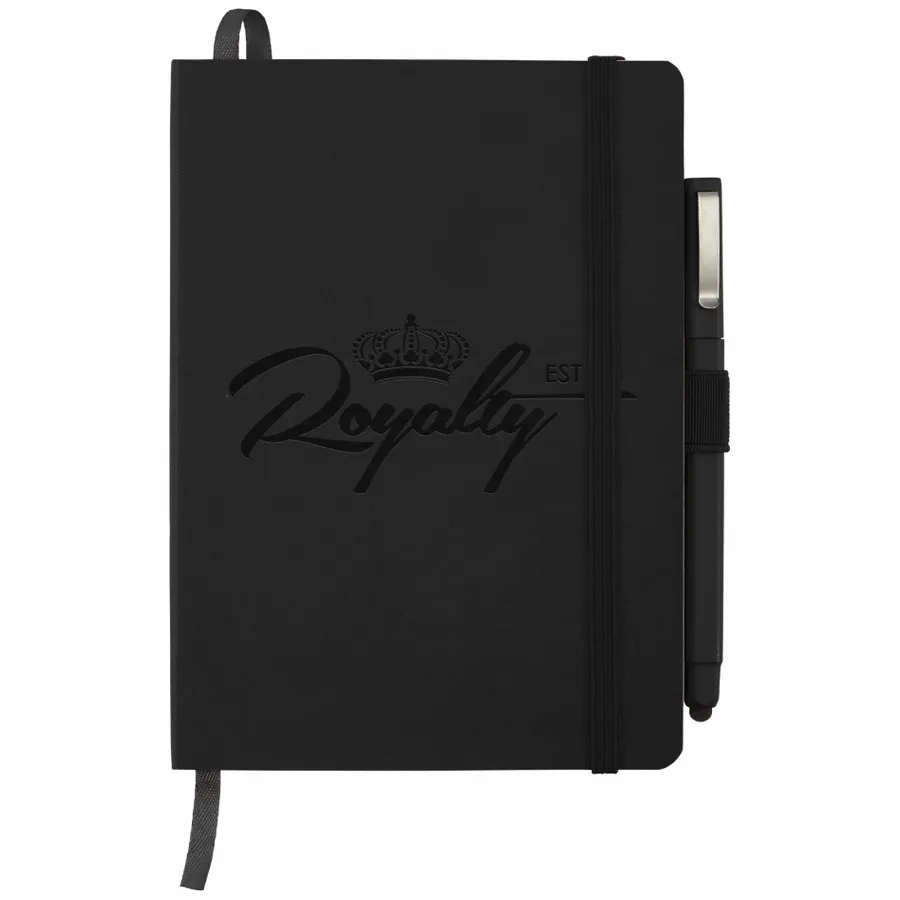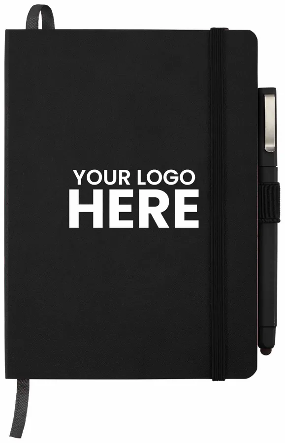 The Firenze Soft Bound Journal Bundle Set includes (2800-46) 5 x 7 Firenze Soft Bound Journal and (6620-33) Ambassador Square Ballpoint Stylus. The notebook features a smooth polyurethane, soft cover with color-matching elastic pen loop, elastic closure, and ribbon page marker. The Firenze Soft Bound Journal includes 64 sheets of white lined paper. Please note: Silkscreen imprint will textured effect (small dots) due to nature of material. This item cannot be configured online. Contact us to order. Set includes: (2800-46) 5 x 7 Firenze Soft Bound Journal and (6620-33) Ambassador Square Ballpoint Stylus Soft, polyurethane cover Color-matching elastic pen loop Ribbon page marker Elastic closure 64 sheets of white lined paper Silkscreen imprint will textured effect (small dots) due to nature of material Note: This item cannot be configured online. Contact us to order.