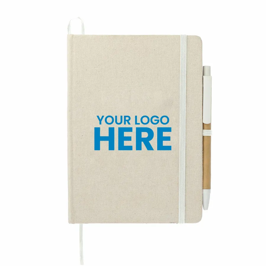 5 x 7 Organic Cotton Bound Notebook w/Pen - ImprintNow.Com