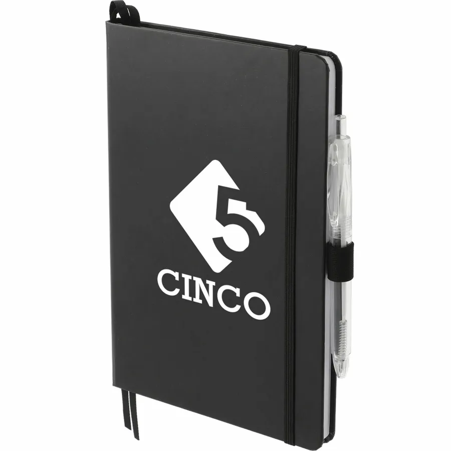 The 5.5 x 8.5 FSC Mix Bound Journal Set includes the 5.5 x 8.5 FSC Mix Bound Journal (2800-82) and FUNCTION RPET Quick-Dry Gel Pen (6003-29). The set features a FSC-certified paper cover with 80 sheets of white FSC-certified soy based ink lined paper. Includes color-matching elastic closure, pen loop and ribbon page marker. Through a partnership with 1% For The Planet, one percent of sales of all EcoSmart products are donated to environmental nonprofits.