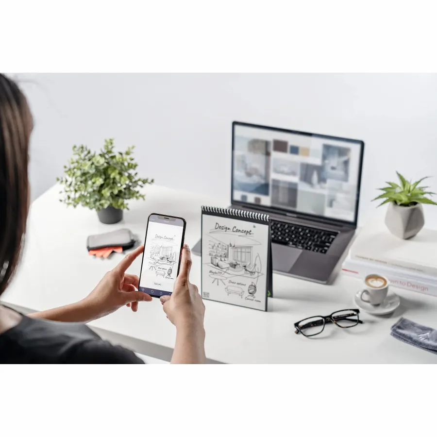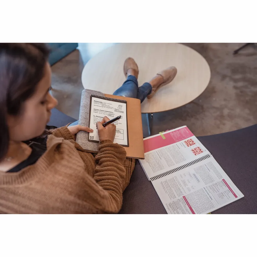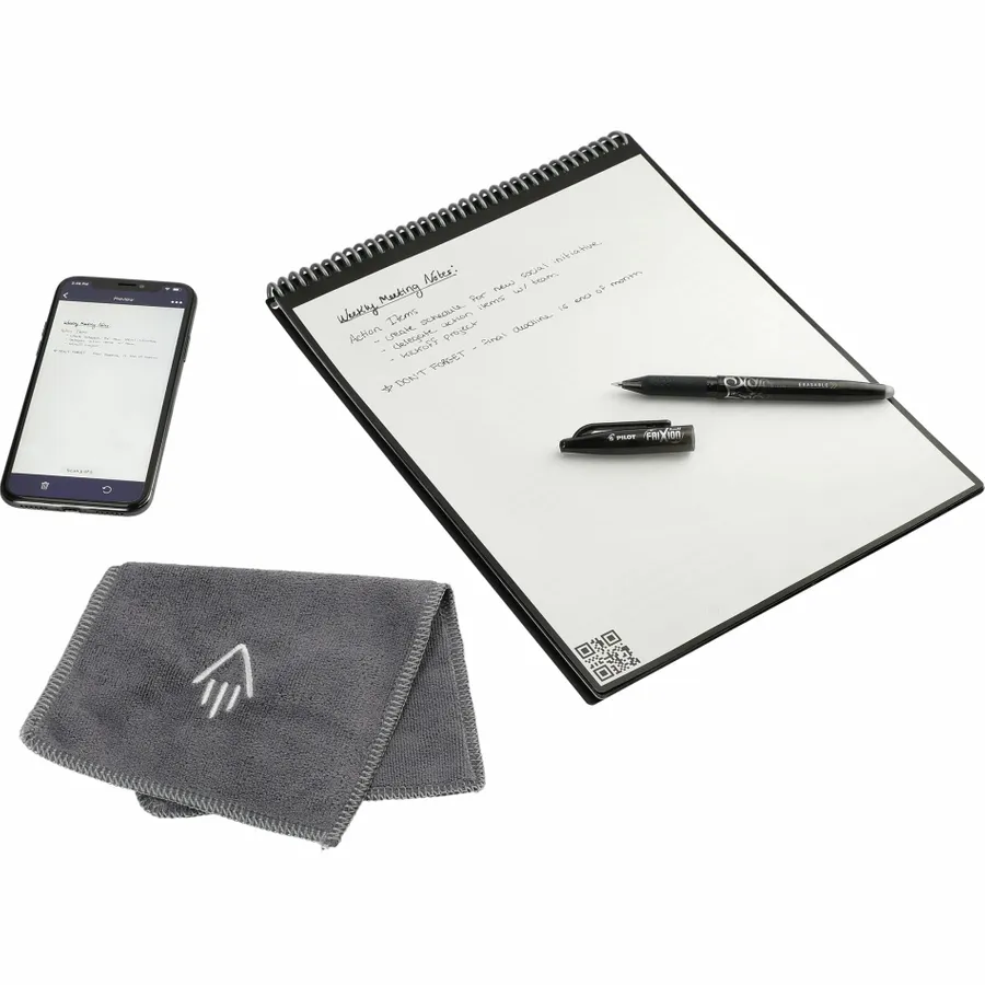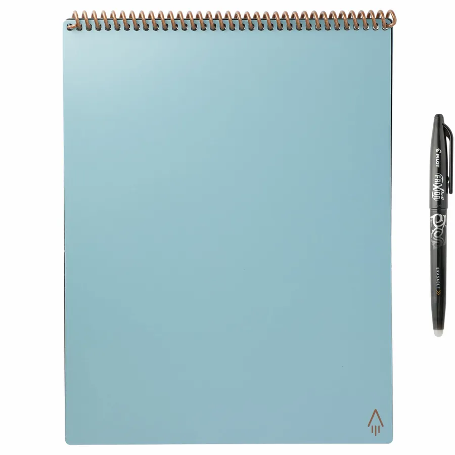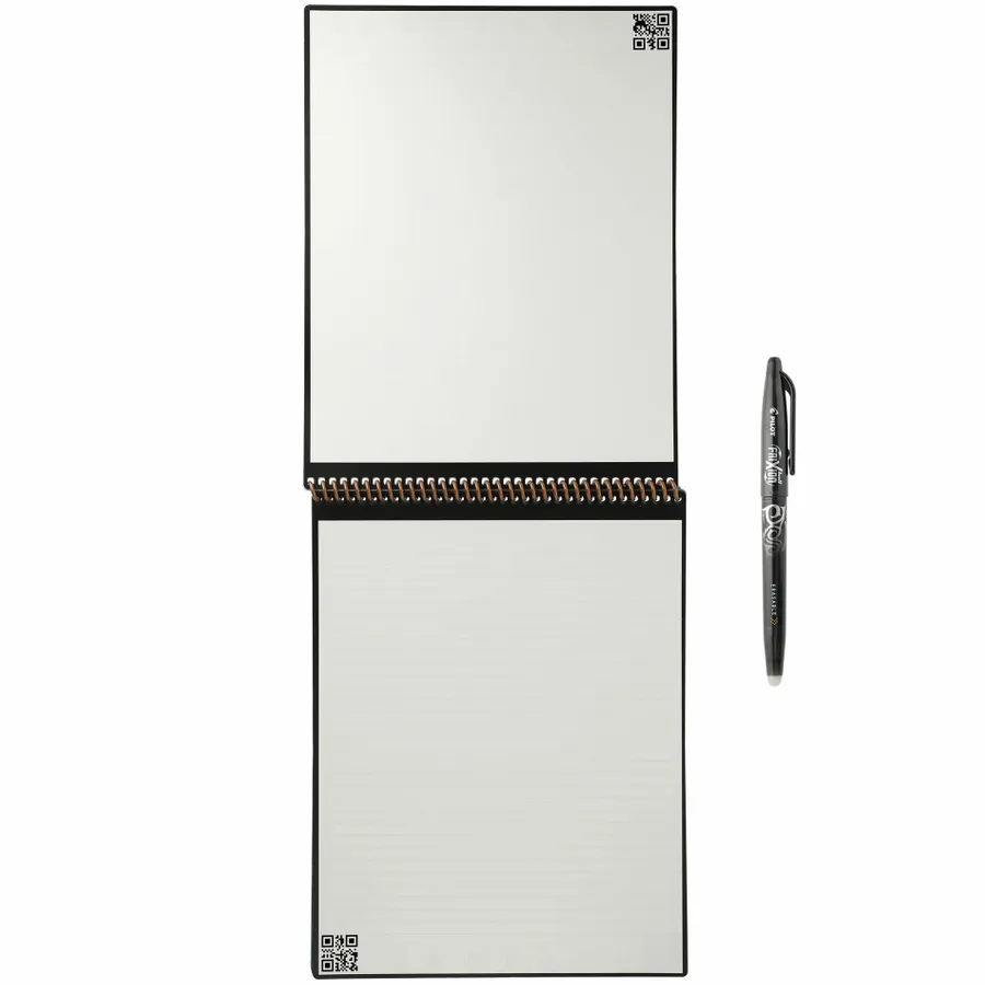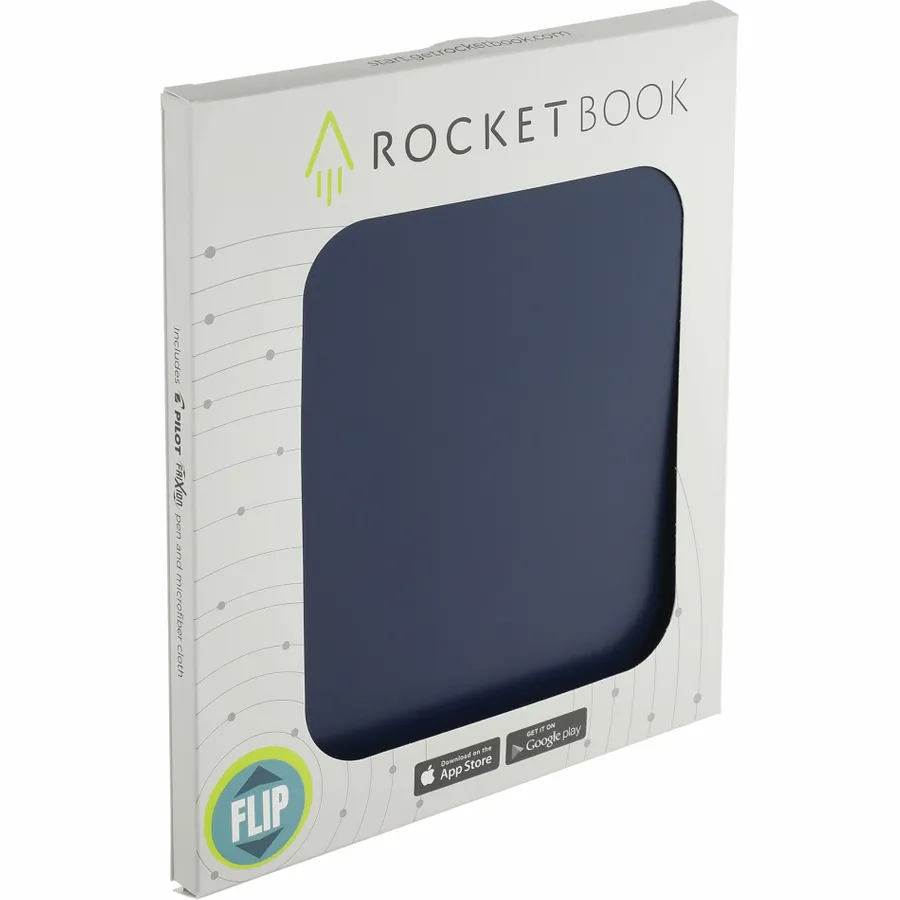 The RocketBook Letter Flip Notebook Set is designed for every classroom, office, and brainstorming session. It includes 36 pages of white lined, college ruled, dotted paper made from synthetic polypropylene materials and allows you to write smoothly using the included Pilot Frixion pen. When youre done writing, the RocketBook Notebook magically wipes clean with a damp cloth to reuse again and again! Use the RocketBook app to back up your notes, plans, lists, and big ideas to your favorite cloud storage service. Then, erase and reuse your Flip Notebook for your next adventure!
