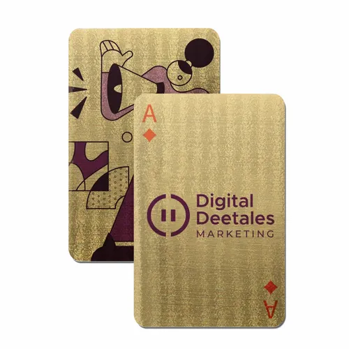 • Make every deal unforgettable. With their sleek brushed gold finish, these playing cards add instant sophistication to any occasion. Perfect for events, luxury branding, or collectors, they shuffle as smoothly as they shine.