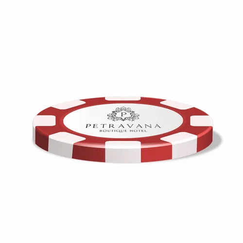 • Stand out with these custom logo poker chips, featuring a bold 8-stripe design and ample space for your branding.