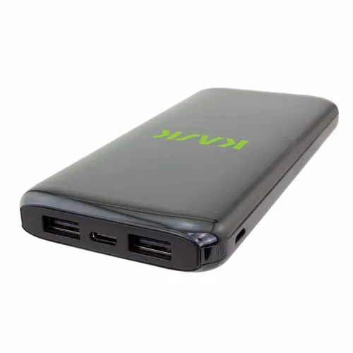 The elegant and sleek 10,000 mAh Power Bank is a slim and powerful mobile device charging power bank with a Type-C input/output port and two USB-A output ports. It's great for professional teams that travel for business and need to keep important devices changed throughout the workday.