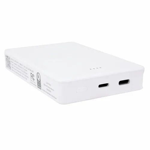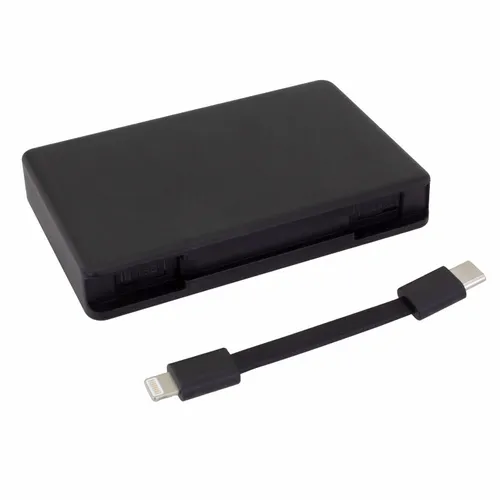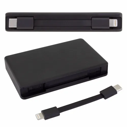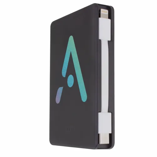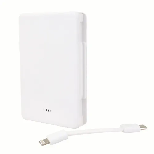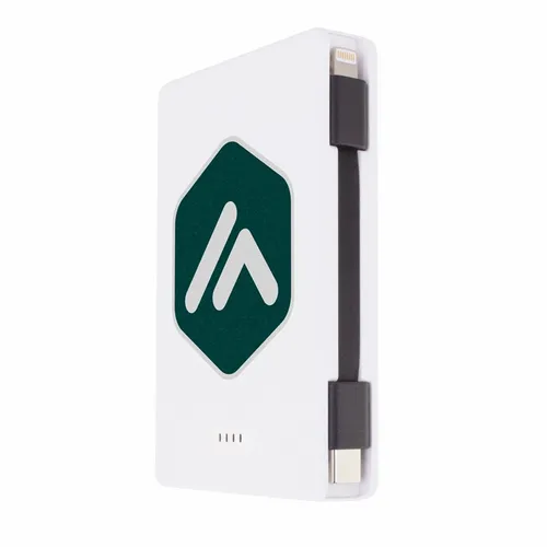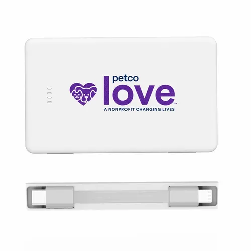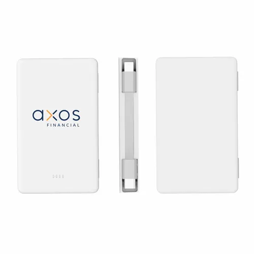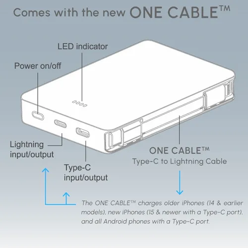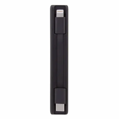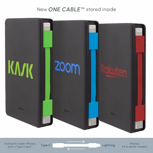 Keep business teams powered up with this officially UL-listed 5,000 mAh power bank that comes with a built-in storage section for a short Type-C to Lightning cable. The attached cable works with Android and Apple phones, PLUS, recharges the power bank. Having a cable always nearby will help keep teams efficient while speeding through a productive day.The innovative ONE CABLE™ solution charges old iPhones (14 and earlier models), new iPhones (15 and newer with a Type-C port), and all Android pho