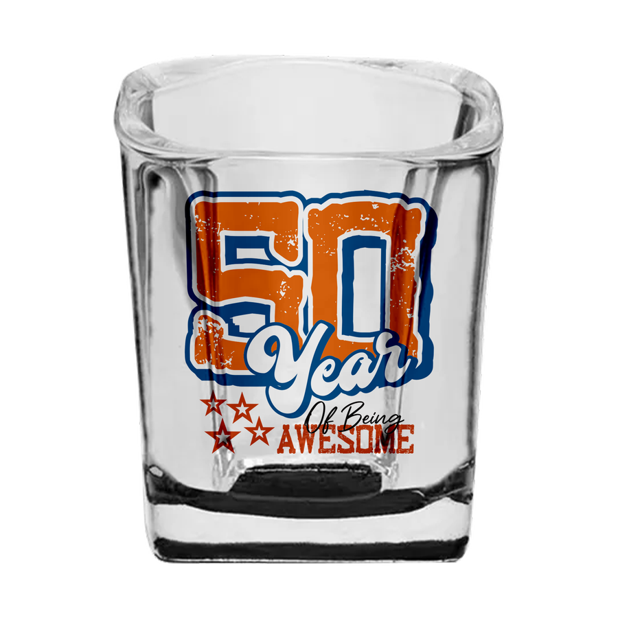 Commemorate the milestone of turning 50 by creating your own custom 50th birthday shot glasses. Designed to make lasting impressions, each imported square shot glass can be personalized with names, dates, messages, or artwork that match your party’s theme. Whether you’re planning a lavish celebration or a laid-back gathering, these personalized shot glasses for 50th birthday make for unforgettable keepsakes or stylish drinkware. Crafted from durable materials and available in a range of styles, these glasses can be ordered individually or in bulk, with generous wholesale discounts, depending on your needs. Perfect for gifting, raising a toast, or decorating, our personalized 50th birthday shot glasses help capture the moment in a fun and memorable way. Cheers to fifty fabulous years - make the toast count with these distinctive collectibles.