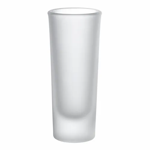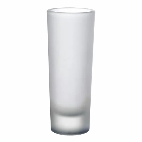 2 oz. Frosted Promotional Cordial Shooter Glasses. High-Quality, Imported Material. Thick Protruding Base with a Sheer Rim. Frosted, Soft, Velvet-Like Cylindrical Design. Recommended Hand Wash Only
