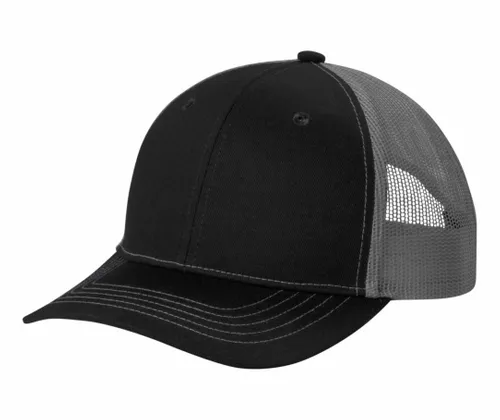 Available in solid, two-toned and tri-toned, this cap features breathable mesh and contrast stitching on the bill. Fabric 100% cotton twill front panels and bill (Solids), 65/35 polyester/cotton twill front panels and bill (Heather Grey) 100% polyester mesh mid and back panels Structure Structured Profile Mid Closure 7-position adjustable snapback