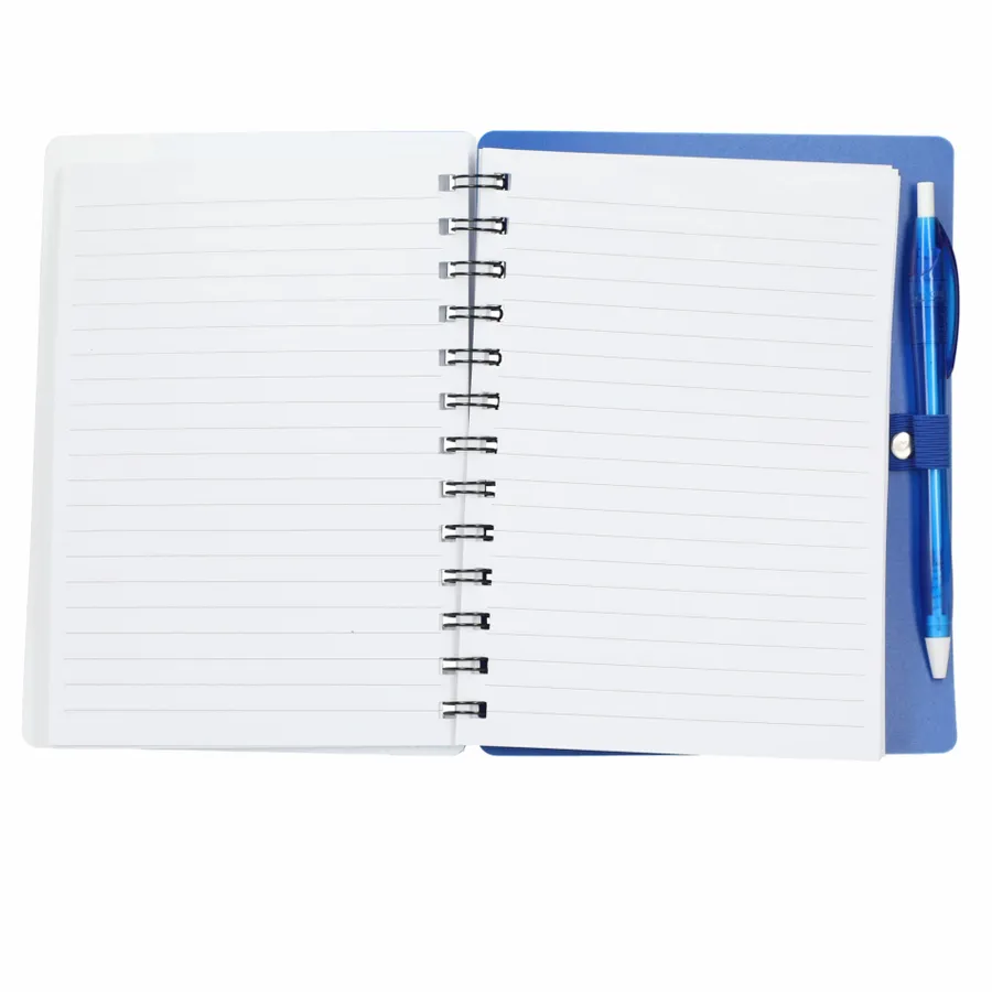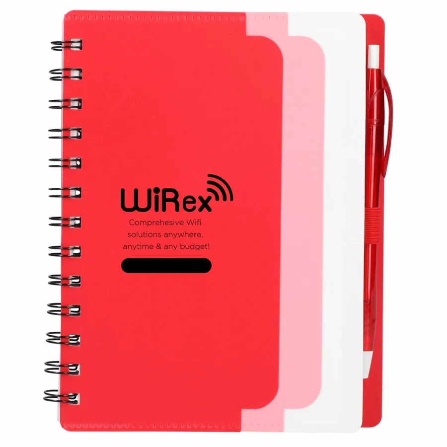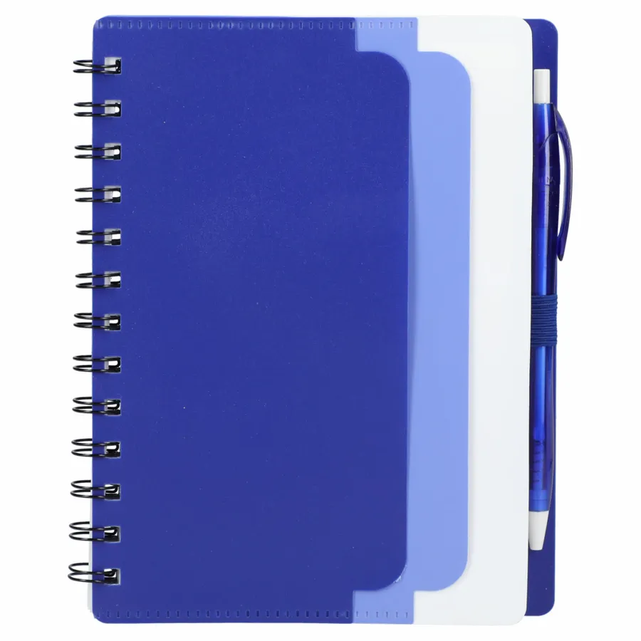 Discover the eco-conscious choice with the 5 x 7 Recycled Dual Pocket Spiral Notebook with Pen. Its 100% recycled PP cover includes dual front pockets for document storage, all within a practical spiral design. Featuring 70 sheets of recycled white lined paper, a color-matching pen loop, and an RPET color matching pen with smooth black ink, click action, and a 1mm tip providing 600 meters of writing length. As part of our commitment through 1% For The Planet, one percent of sales from all EcoSmart products contribute to environmental nonprofits. Opt for sustainability in your note-taking. Note that pens are packed separately.