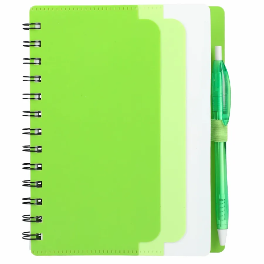 - 5 x 7 Recycled Dual Pocket Spiral Notebook w Pen