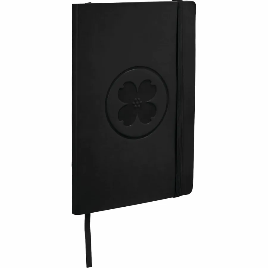 The 8 x 5.5 FSC Mix Pedova™ Soft Bound Journal features a flexible cover made from luxurious Italian UltraHyde materials. It closes using a built-in elastic band and opens to reveal 80 sheets of FSC Mix lined paper, perfect for note-taking, list-making, jotting down ideas and more. This compact 8.0 H x 5.5 W notebook contains a convenient built-in page marker and features a document pocket inside its interior back cover.
