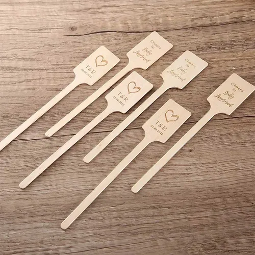 Enhance your beverage presentation with our Wooden Shaped Stir Sticks. Perfect for bars, cafes, and special events, these stirrers add a touch of elegance and personalization to any drink. Made from high-quality wood, these stirrers are not just functional but also a statement piece for any occasion.