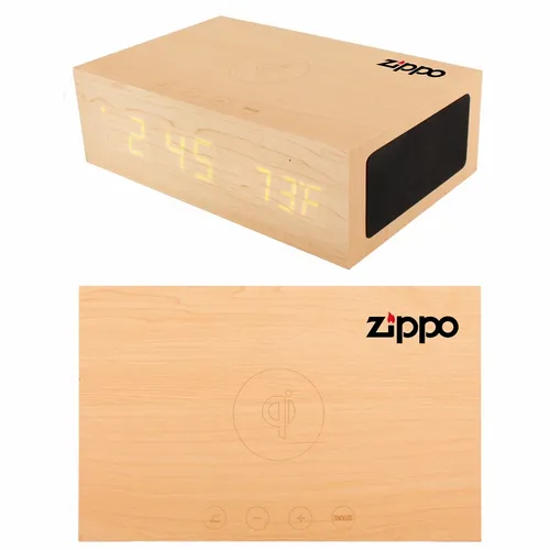 Wireless wireless speaker and wireless Qi charging station that looks great on any desktop and is a fantastic option for an executive gift. What is Wireless Qi Charging? Qi wireless charging is an exciting new technology that enables select portable devices to recharge without any wires. Simply position the device on the BlueSequoia and it will begin to charge without the hassle of having to plug in a charging cable. Features: Digital Clock, Alarm, Temperature, Material: MDF with wood veneer