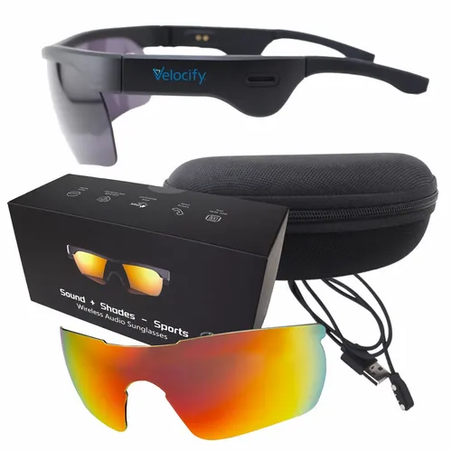 Wireless wireless Audio Sunglasses, wireless specification: V5.0 QCC3034, wireless profiles: HSP,HFP,A2DP and AVRCP, Talk time: About 6 hours (50% volume), Music playing time: About 5.5hours (50% volume), Charging time: About 1.5 hours, Rechargeable 95 mAh Li-polymer battery, Ergonomic Design for Cycling, IPX7 waterproof Qualcomm Aptx, UVA/UVB protection