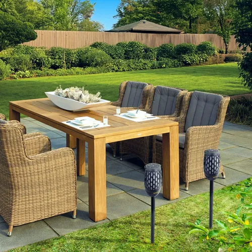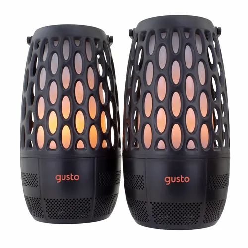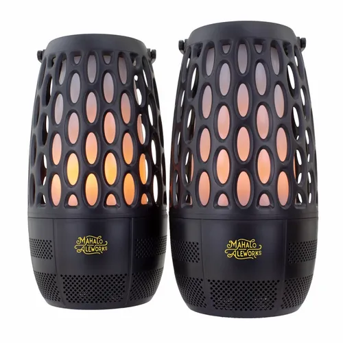 A fun pair of wireless speakers with different lighting modes and built-in sounds. Each has a handle, to easily suspend on a hook, and an attachable pole for placing them to the ground. When paired together, they support a True Wireless Stereo (TWS) function.