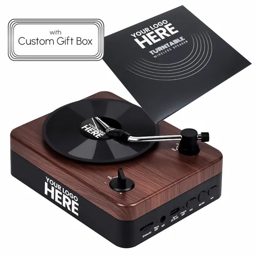Turntable Wireless Speaker with Custom Record Envelope and Custom Gift Boxs - ImprintNow.Com